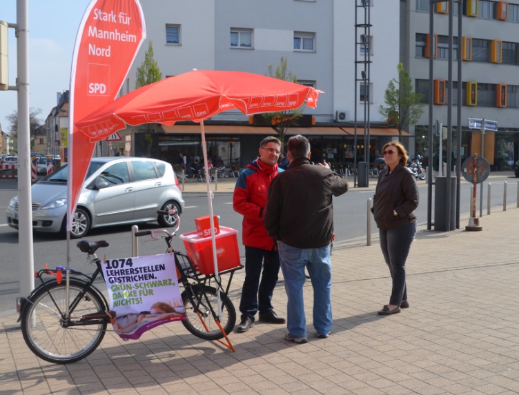 Der Landtagsabgeordnete Dr. Stefan Fulst-Blei machte mit seinem neuen Fahrrad-Infostand auch Station am Stich in Sandhofen. Die Bürgerinnen und Bürger nahmen das Gesprächsangebot mit dem Landtagsabgeordneten und der Stadträtin Andrea Safferling gerne wahr, um ihre Anliegen vorzubringen.