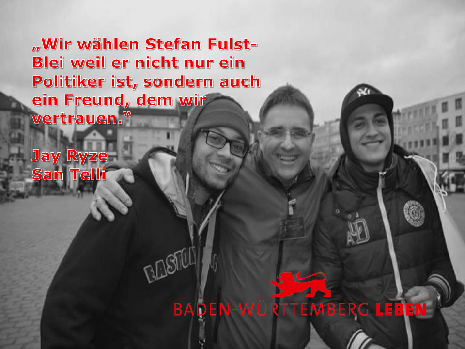 "Wir wählen Stefan Fulst-Blei, weil er nicht nur ein Politiker ist, sondern auch ein Freund, dem wir vertrauen." Jay Ryze und San Telli