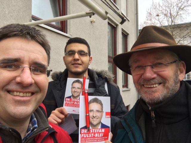 Gute Stimmung bei den Hausbesuchen in Käfertal-Rott. Danke an Wolfgang Katzmarek und Murat Yücel für die Unterstützung!