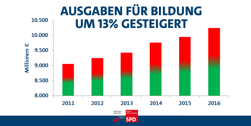 Der Spitzenkandidat der CDU hat es bekanntlich nicht so sehr mit dem Rechnen. Lieber Herr Wolf: Wir haben die Ausgaben für Bildung nicht reduziert, sondern um 13% gesteigert! Aber Kopf hoch: Für solche Fälle haben wir die ‪Bildungszeit‬ eingeführt, da uns die Erwachsenenbildung ebenfalls wichtig ist!