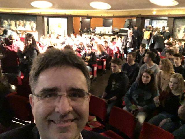 Vorfreude auf die große Diskussion der Landeszentrale für politische Bildung Baden-Württemberg und der Stadt Mannheim. 600 Schüler/innen im Capitol Mannheim.