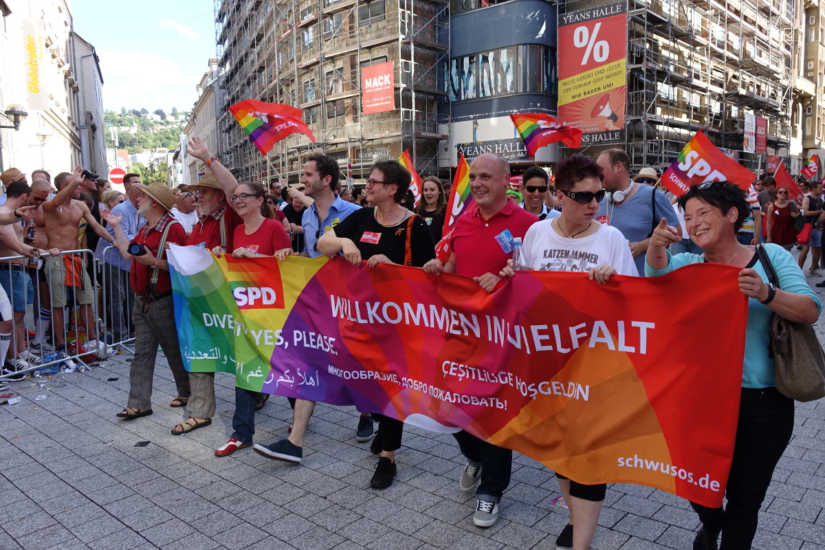 Stuttgart. Anlässlich des Christopher Street Days am vergangenen Samstag (30.07.2016) in Stuttgart verlangte der SPD-Abgeordnete Daniel Born die volle Gleichberechtigung für alle LSBTTIQ-Menschen. „Der CSD wird Grün-Schwarz hoffentlich Beine machen für den Abbau von Diskriminierungen für Lesben, Schwule, Bisexuelle, Transsexuelle, Transgender, Intersexuellen und Queere“, so Born.