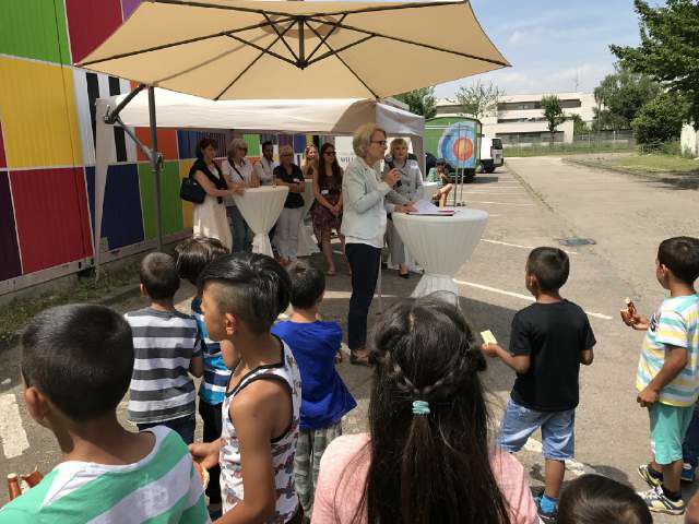 Ein Jahr Willkommensschule für Flüchtlinge auf Benjamin-Franklin/Columbusstraße. Bürgermeisterin Ulrike Freundlieb hebt das tolle ehrenamtliche Engagement hervor. Bereits über 180 Kinder konnten beschult werden. Berechtigte Forderung: die Landesregierung sollte die Stadt Blick auf die Kosten unterstützen. Ich werde mich hierfür einsetzen!