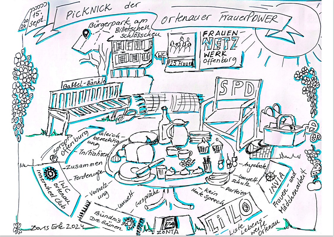 Doris Erk hat wunderbar festgehalten, was das Picknick des FrauenNetzwerkes Offenburg ausgemacht hat.