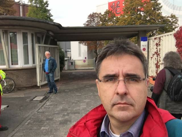 Vor dem Werkstor vor GE. Auf zur Demo!!!
