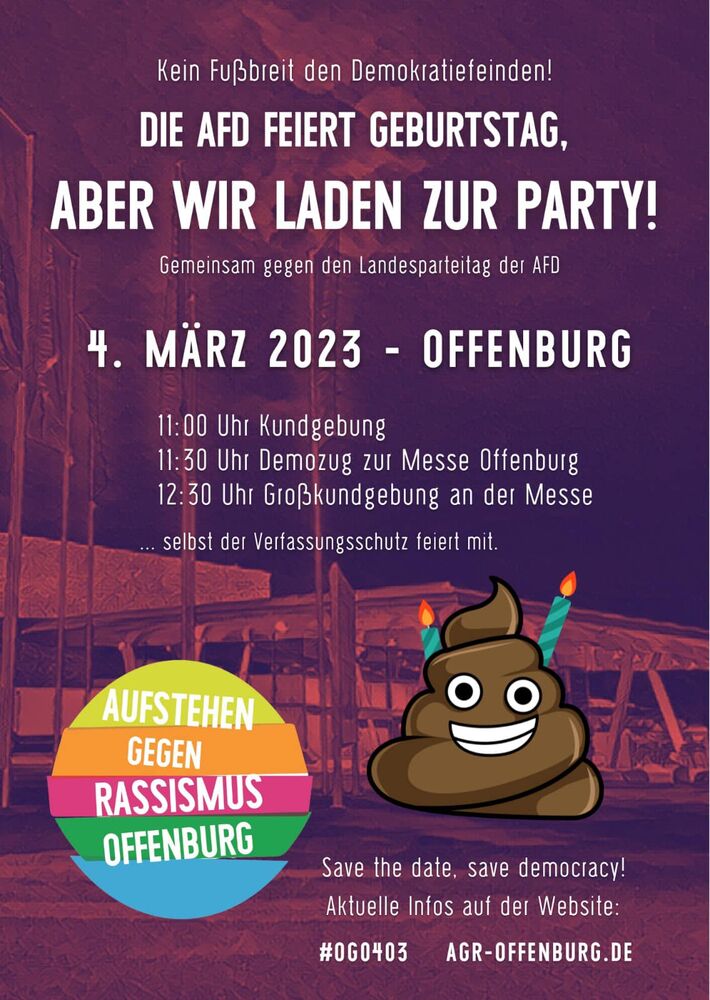 Zur Party laden aber wir ein, denn das ist ein guter Grund, um am 4. März kraftvoll für unsere Demokratie und gegen die Menschen- und Demokratiefeinde zu demonstrieren.
