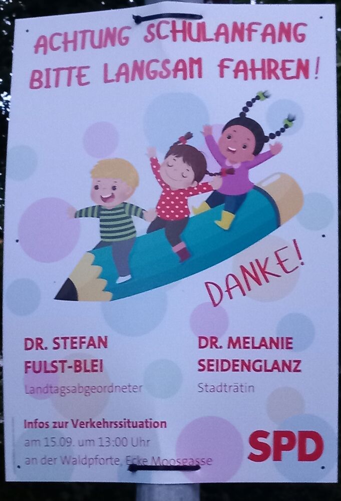 Landtagsabgeordneter Dr. Stefan Fulst-Blei und Jan-Peter Röderer, verkehrspolitischen Sprecher der SPD-Landtagsfraktion,  laden am ersten Schultag zu einer Mitmach-Aktion rund um das Thema sicherer Schulweg ein. Mit dabei ist weiter der örtliche SPD-Bezirksbeirat Peter Stegmaier. Ab 13 Uhr tauschen sich die Politiker gegenüber der Alfred-Delp-Schule vor Ort über die aktuelle Situation auch im Stadtteil aus. Schülerinnen und Schüler können außerdem an einem Quiz zum Thema Verkehrssicherheit teilnehmen und eine kleine Überraschung gewinnen.