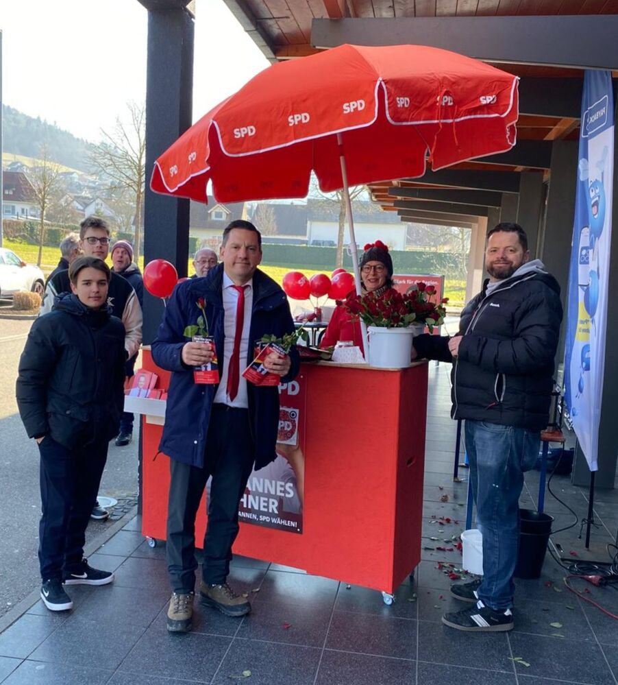 Die SPD Seelbach hat zusammen mit Johannes Fechner am 08.02.2025 vor dem Edeka Kohler in Seelbach Rosen und weitere Geschenke verteilt. Die Besucher und Besucherinnen des Edeka Kohler konnten mit Johannes Fechner ins Gespräch gehen und Argumente austauschen.