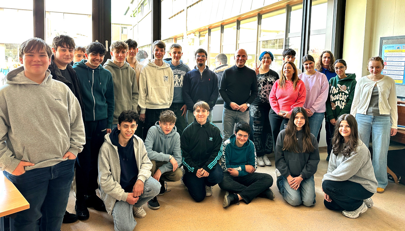 Hockenheim. Politik zum Anfassen – das erlebten die Neuntklässlerinnen und Neuntklässler des Carl-Friedrich-Gauß-Gymnasiums und ihre Gemeinschaftskundelehrerin Renate Bischoff bei einem besonderen Besuch: Landtagsvizepräsident und SPD-Bildungsexperte Daniel Born war zu Gast, um sich den Fragen der Jugendlichen zu stellen. Unter der souveränen Moderation von Yusuf Marouf, Schüler der 9. Klasse, entwickelte sich ein spannender Austausch. „Wir sind eine politisch sehr aktive Klasse, diskutieren viel und wollten uns einen Experten dazuholen“, erklärte Yusuf zur Begrüßung. Mit dem hiesigen SPD-Abgeordneten hatten die Schülerinnen und Schüler einen erfahrenen Landespolitiker eingeladen. Born bringt nicht nur seine Expertise als wohnungspolitischer Sprecher der SPD-Landtagsfraktion und Bildungspolitiker mit – seit 2016 ist er Mitglied des Bildungsausschusses im Landtag –, sondern kennt auch die Abläufe und Dynamiken im Parlament aus einer ganz besonderen Position: Als stellvertretender Landtagspräsident leitet er regelmäßig die Plenarsitzungen und sorgt für einen fairen, geordneten Ablauf der Debatten.