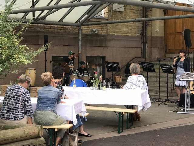 Ute Heß, Vorsitzende des Landesverbands der Schulfördervereine, eröffnet das Sommerfest. Ich selber engagiere mich gerne im Beirat des LSFV.