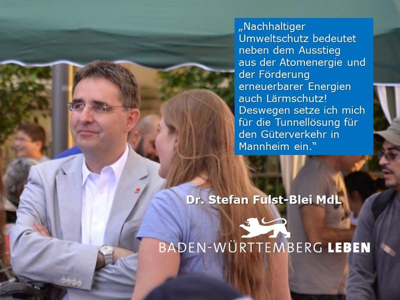Nachhaltiger Umweltschutz bedeutet neben dem Ausstieg aus der Atomenergie und der Förderung erneuerbarer Energien auch Lärmschutz. Deswegen setze ich mich für die Tunnellösung für den Güterverkehr in Mannheim ein.