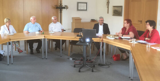 Die Staatssekretärin im Berliner Familienministerium, Elke Ferner, im Gespräch mit Bürgermeister Markus Vollmer über die Aufgaben der Kommunen im Bereich der älteren Generation.