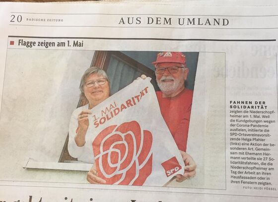 Aber wir können Flagge zeigen. Macht mit: am 1. Mai mit einer Solidaritätsflagge an Eurem Haus!