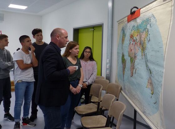 Ein vollgepackter Gemeinschaftsschulbesuch im Enzkreis: Gespräch mit der Schulleitung, Politikparcours bei der 10a und ein Gang durchs Schulgebäude standen für Landtagsabgerodneten Daniel Born in Wiernsheim auf dem Programm.