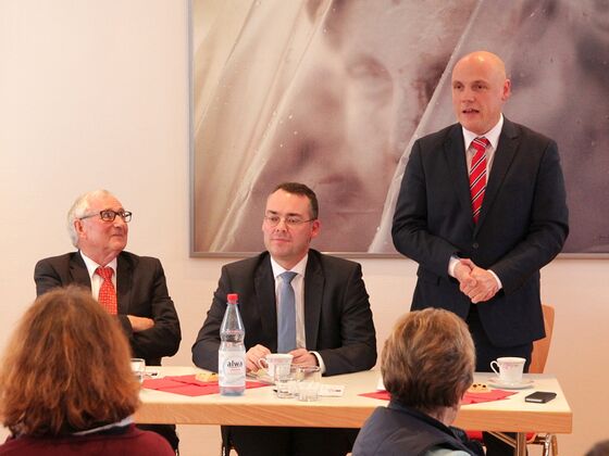 Neulußheim. Informationsbesuch zur Wahlkampfunterstützung von Landtagskandidat Daniel Born bei den Sozialdemokraten in Neulußheim: Peter Friedrich, Minister für den Bundesrat, Europa und internationale Angelegenheiten und dabei für Gespräche auf Bundesebene sowie mit den europäischen Partnern zuständig, kam in den Alten Bahnhof, um mit den Ehrenamtlichen der Arbeiterwohlfahrt (Awo) und des Netzwerks Flüchtlinge der evangelischen Kirchengemeinde zu diskutieren und Erfahrungen auszutauschen.