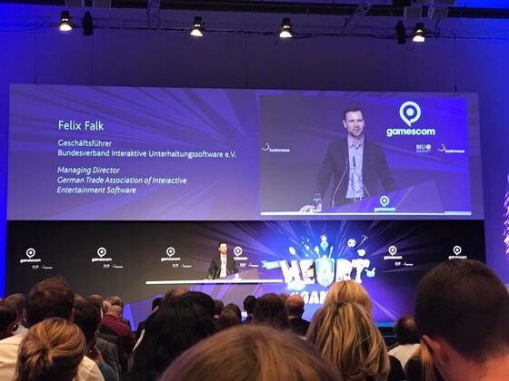 Felix Falk, Geschäftsführer des Bundesverbandes Interaktive Unterhaltungsindustrie (BIU), eröffnet die Gamescom 2017 als Vorreitermesse in Sachen Digitalisierung. Falk mahnt an, dass von 100 € nur 7 € bei deutschen Entwicklern landen. Insbesondere bei Virtueller Realität müsse mehr in Deutschland an Förderung erfolgen.
