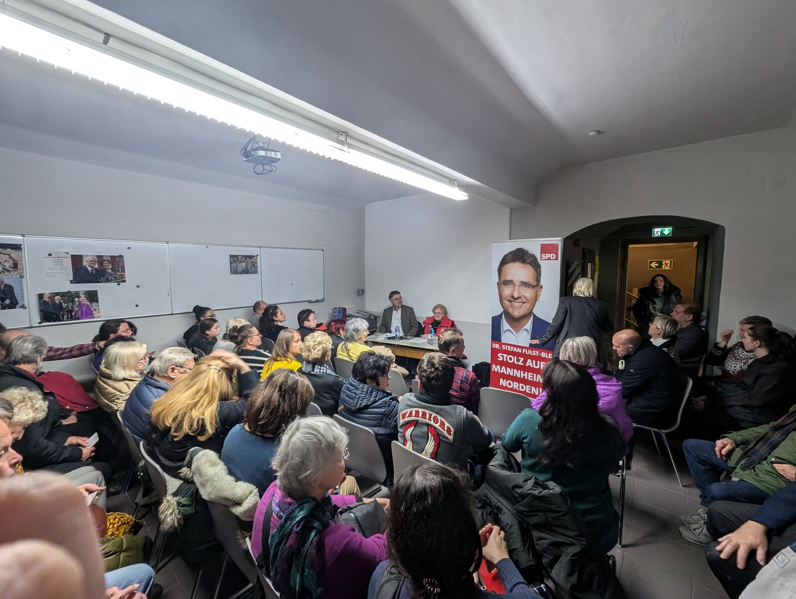 Kein Platz blieb unbesetzt als der SPD-Politiker Stefan Fulst-Blei in der KZ-Gedenkstätte Sandhofen durch den Abend führte, während Karla Spagerer bewegende Anekdoten aus ihrem Leben im Nationalsozialismus erzählte. Mit ihrer persönlichen Geschichte machte sie die Schrecken der NS-Diktatur greifbar und gab dem Publikum einen tiefen Einblick in die Lebenswirklichkeit zahlreicher Familien zu dieser Zeit. Dabei verlor die inzwischen 95-Jährige allerdings nie ihren einzigartigen Humor und überraschte die Zuschauer immer wieder mit lustigen Zwischenbemerkungen.