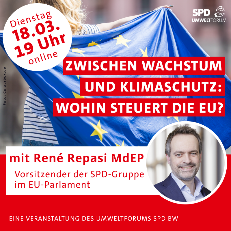 René Repasi, seit 2022 Mitglied des Europäischen Parlaments, Vorsitzender der SPD-Gruppe in der S&D-Fraktion und Professor an der Erasmus-Universität Rotterdam, wird im Rahmen unserer Online-Veranstaltung des Umweltforum SPD BW